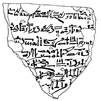 Das Ostrakon Berlin p12379 datiert aus dem Neuen Reich (ca. 19. Dynastie) und wird derzeit im Ägyptischen Museum Berlin aufbewahrt.
