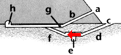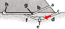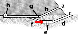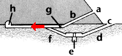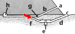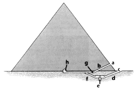 f aufsteigender Gang g Fallsteinvorrichtung h Grabkammer |