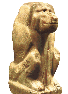 Götterstatue eines Pavians (der "Große Weiße Gott") Regierungszeit des Königs Narmer, ca. 3050 v.u.Z. Kalzit-Alabaster, Höhe 52cm, Fundort unbekannt Inv.Nr. 22607