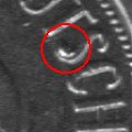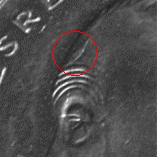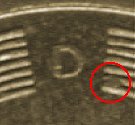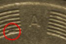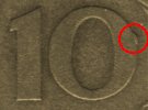 Stempelabsplitterung im Bereich der Wertzahl |